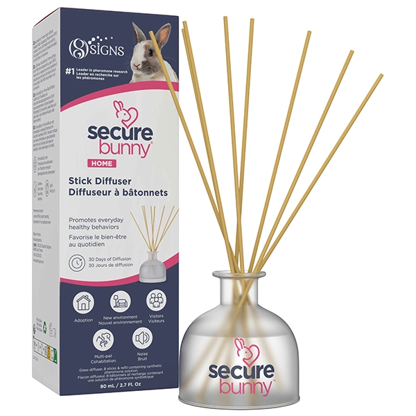 Nous avons spécifiquement développé une gamme de produits pour le bien-être du lapin à base de Phéromone Apaisante Maternelle (RAP : Rabbit Appeasing Pheromone) : SecureBunny Diffuseur, SecureBunny Adventure, SecureBunny Transport.
