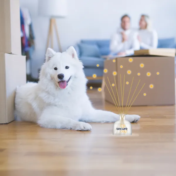 Secure Dog Home is a next-generation, patented solution that combines scientifically validated pheromone actives with a unique passive diffusion system using natural wooden sticks, no electricity required.